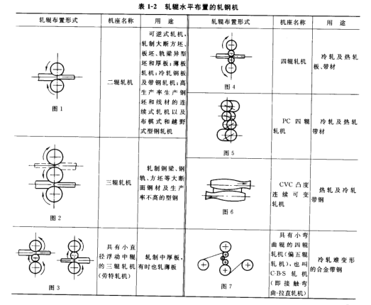 1,具有水平軋(zhá)輥的軋鋼機(見表(biǎo)1-1)