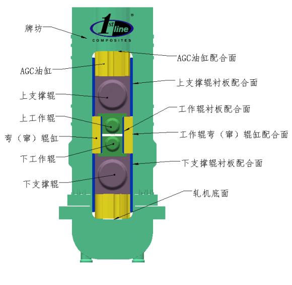2、鋼鐵(tiě)企(qǐ)業1580車間粗軋軋機牌坊底麵磨損修複(fù)