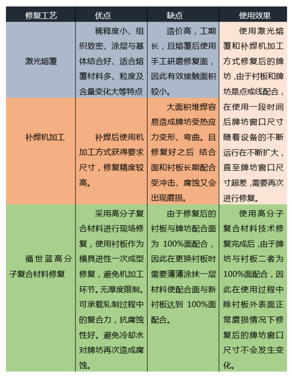 三、幾種常見(jiàn)的軋機牌坊修複工藝對比
