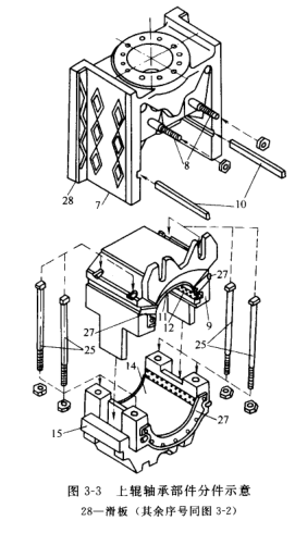壓下裝置的(de)齒輪和軸承以及壓下螺絲、螺母和套筒都用稀油循環潤滑。潤滑油從壓下螺絲頂部的噴油環8噴出。